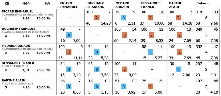 Arnaud termine troisième avec une Moyenne Générale de 7,06, en ayant battu Emmanuel au premier match.