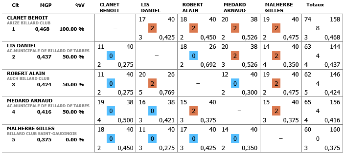 Bravo à Daniel qui termine second de la poule avec une Moyenne Générale de 0,437.